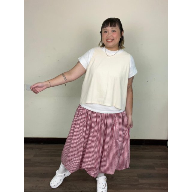 FV5J45405橡筋腰細格仔傘傘半截裙