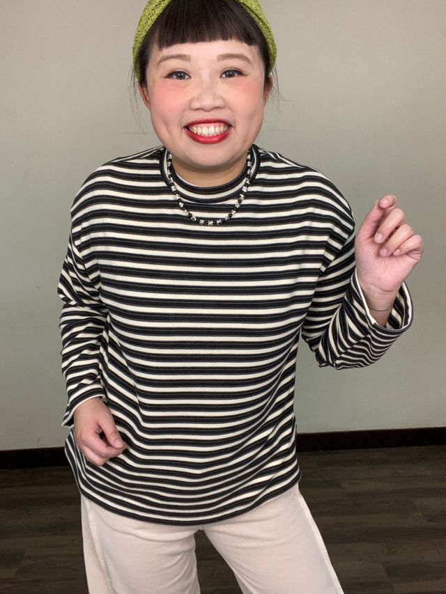 DA3229小圓領柔軟布料橫條紋長袖TOP