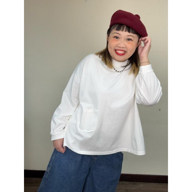 WE5176圓領小袋子棉質簿長袖TOP(一口價)