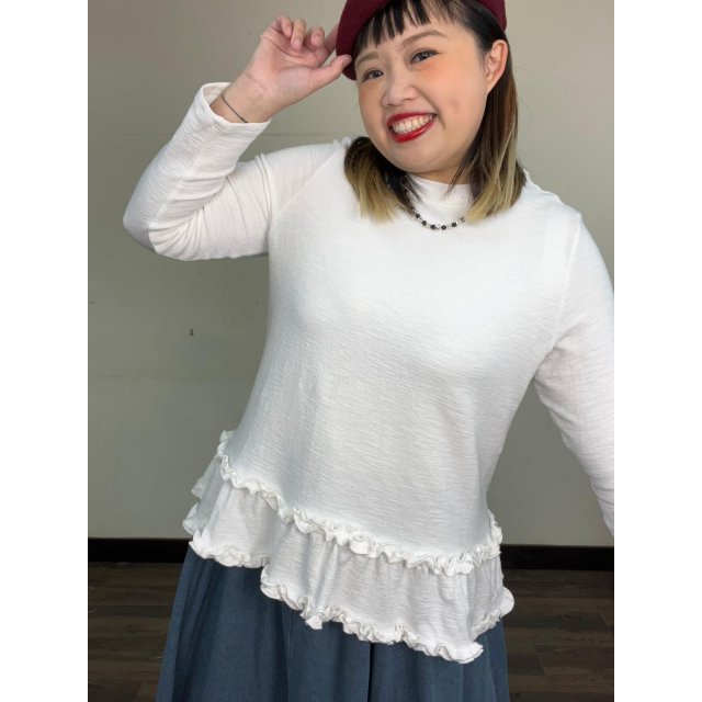 NOS9912軟軟棉ruffle邊圓領長袖top
