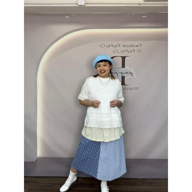 DA50023橡筋腰格仔拼布半截裙