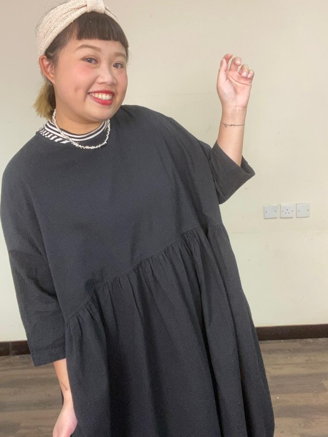 自家闊身格仔綿連身裙