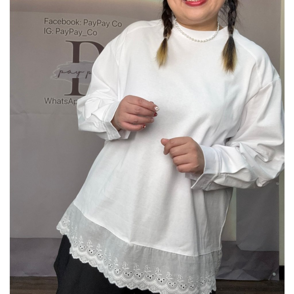 FV5451116圓領下擺通花邊長袖TOP(一口價)🚛預計11月中寄出🚛